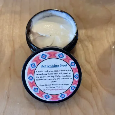 Authentic herbal products are carefully handcrafted by native Blackfeet mother and daughter, Pauline Matt and Veronica Kempfert, who gather and grow their own herbs, all the while continuing to study the native plants found on the Blackfeet reservation. With a focus on herbal remedies and all-natural care and wellness products, they take pride in following ancient and traditional teachings, the footprint of their alternative medicinal remedies.